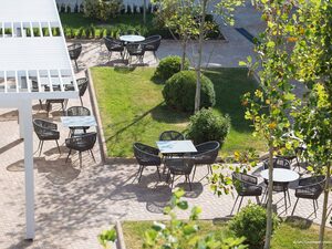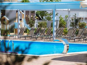 • открытый бассейн (открытый бассейн с подогревом, площадью 216 м² и максимальной глубиной 1,5 м, обеспечивающий комфортное купание в любое время года. Для вашего отдыха предусмотрены два «водопада» для массажа. Для маленьких гостей создана специальная зона купания — детский бассейн площадью 59 м² с глубиной до 0,6 м.)