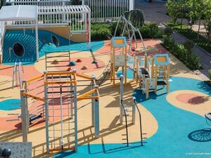 • лестницами и батутами (современное пространство для игр, развития и общения детей. Здесь предусмотрено разнообразное оборудование, которое превращает любую прогулку в увлекательное приключение: Игровой комплекс «Тербий»: способствует физическому и умственному развитию, помогает осваивать навыки взаимодействия в группе. Качели «Озорство»: любимое развлечение детей, укрепляющее мышцы и вестибулярный аппарат. Качалка «Радуга»: безопасное и увлекательное решение для малышей. Карусель «Калейдоскоп»: классика, которая дарит радость и помогает развивать координацию движений. Спортивная рама FY-1592.4: возможности для занятий спортом на свежем воздухе. Искусственный холм с оборудованием: игровое пространство, вдохновляющее на импровизацию. Сетка для лазания «Паутинка»: укрепляет мышцы и преодолевает страх высоты. Трубы переговорные: веселая игра для общения на расстоянии. 3D-фигуры из резиновой крошки: развивают фантазию и воображение.)