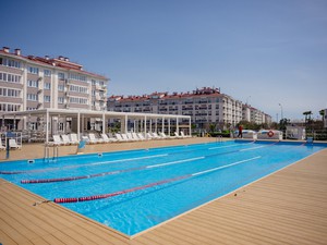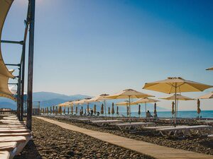 Пляж города-отеля «Бархатные сезоны», один из немногих в Сочи, удостоен награды «Синий флаг», которая гарантирует гостям курорта экологическую безопасность морской воды и комфорт береговой территории.