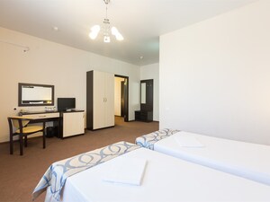 Широкий выбор вариантов размещения позволит каждому гостю сделать правильный выбор в соответствии с личными предпочтениями и финансовыми возможностями. В наличии номера с балконами с видом на море, горы или озеро орнитологического парка (в зависимости от планировки номера). Также предусмотрены номера для маломобильных групп населения. По запросу гостя номер может быть оборудован дополнительным спальным местом или детской кроваткой. В зависимости от кварталов представленные панорамы номеров могут отличаться.