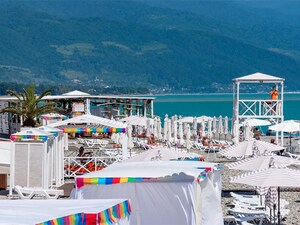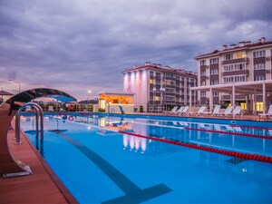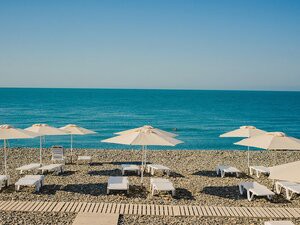 Пляж города-отеля «Бархатные сезоны», один из немногих в Сочи, удостоен награды «Синий флаг», которая гарантирует гостям курорта экологическую безопасность морской воды и комфорт береговой территории.