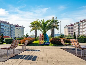 Семейный квартал выход к морю – на расстоянии 10 минутной шаговой доступности. На территории пляжа: лежаки, зонтики, душевые и раздевалки.
