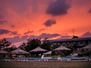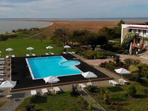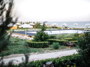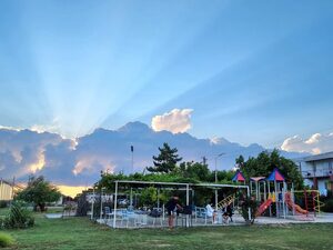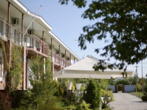 пансионат на берегу Ейского лимана Азовского моря. В ста метрах от гостиницы начинается пляж, линия которого растягивается на километры. Комфортный отдых по приемлемым ценам.